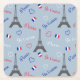 Seamless Paris text design illustration with Eiffel Tower, tricolor heart shapes and French flag decoration on blue background for Valentine's Day