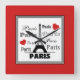 Paris text design illustration with Eiffel Tower and red hearts decoration in black and white squares on red background
