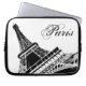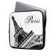 Customisable laptop sleeve with black and white illustration of the Eiffel Tower in Paris, France.