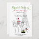 Paris Themed Bridal Shower party invitations, invite features a poodle dog, the Eiffel Tower, a table and two seats with flowers on top and a cute little green purse. customise with your own text - Bridal shower invitations from Ricaso