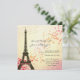 Soft, romantic feel with pastel colours of cream and pink with hearts screened in the background. Old fashioned look yet stylish for today's bride. Eiffel tower is perfect for the French or French themed wedding. Easily edit for your own wedding invitation. Showcase your invitations in style!