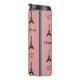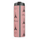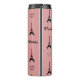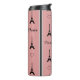 Paris illustration with Eiffel Tower and heart decoration and Paris text design on black, white and pink striped background