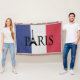 Paris text design illustration with Eiffel Tower decoration on grunge French flag background