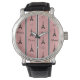 Paris illustration with Eiffel Tower and heart decoration and Paris text design on black, white and pink striped background