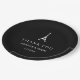 These elegant, minimalist wedding plates feature modern style text in white on a black background. There is also a simple, elegant white Eiffel Tower image. A chic choice for any French or Paris theme wedding or bridal shower. The plates say "Thank You" and the bride and groom's names and wedding date, but you can easily personalise using the template.