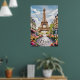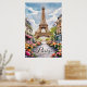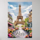 A watercolor painting depicting a picturesque scene in Paris, featuring the Eiffel Tower in the background, a cobblestone street lined with colourful flowers, and charming Parisian buildings. The painting captures the romantic and enchanting atmosphere of the City of Lights.