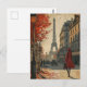 "Transport yourself to the enchanting streets of Paris with our Vintage Postcard featuring an iconic view of the city. A captivating blend of romance and nostalgia, this card showcases a woman adorned in a flowing red long-armed dress, adding a touch of elegance to the timeless beauty of the Parisian landscape. Whether you're a collector or sending warm wishes, let this vintage-inspired postcard capture the essence of Parisian allure and the charm of a bygone era."