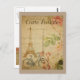vintage images with a pink rose Eiffel Tower in Paris and a