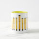 A five pen grouping of Parker Duofolds in Mandarin Yellow Permanite: left to right, Canadian Parker Lady Duofold c. 1928-29, Parker Duofold Junior c. 1927, Parker Duofold Senior c. 1928-29, Parker Duofold Junior c. 1928-29, and Parker Duofold Junior Streamline c. 1930-1932.  They repeat three times around the mug.  Put your yellow on!