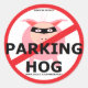 PARKING HOG BANDIT STICKERS are a humourous way to say you're HOGGING A PARKING SPOT! No more fighting with inconsiderate PARKING SPACE HOGS who take up two parking spots. In a capricious way you can get your point across and relieve the stress of not finding a parking spot with an Innuendo joke! This hilariously funny Innuendo is a comical and laughable joke to a common parking problem!!!! PLEASE PLACE STICKERS ONLY ON WINDOWS!