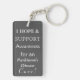 Awareness ribbon angel keychain features the art of a silver awareness angel painting. The art side notes "Parkinson's Disease Awareness" and the reverse side states "I Hope & Support Awareness for a Parkinson's Disease Cure!" Add your own custom words for personalised angel art cause awareness custom charm key chains! You can also remove the text for an art only angel pendant key chain. The silver awareness angel ribbon painting art keychains can be customised with personalised messages to make great awareness cause art key chains for fundraisers, awareness gifts, or other special events. Give this angel art keychain charm as an awareness ribbon gift for any occasion.