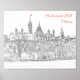 lllustration, in sketch style, of Parliament Hill - Ottawa, Ontario, Canada. Its Gothic revival suite of buildings is the home of the Parliament of Canada.