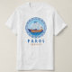 Paros, Greece men's T-Shirt with a design of an ancient Greek ship and Greek style lettering. This design features an Ancient Greece ship and the Greek key lines pattern in a circle with the sea and sky. This Greek style font design makes this tee an ideal gift or souvenir or to wear while you are on vacation in Paros island.