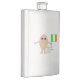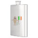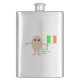 This awesome flask features a funny cartoon of an egg with arms and legs. The egg has arms and legs and a small crack in its head exposing the white inside. It has blue eyes with a black pupil and a big smile where the yolk of the egg can be seen. The eggshell looks rough. This patriotic Irish egg proudly holds its flag and there is green text below the flag that reads "it's all about the craic". This fun design is great for Saint Patricks Day or for proud Irish men and women.