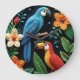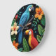 Parrot And Toucan in a Beaded Forest, Dark Botanical Birds Jungle Wildlife Animals Eclectic Craft Art Print by 83 Oranges Uma Gokhale.
