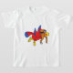 The t-shirt feels and looks great quality, a good thick cotton. It will be a little big for my son, but that means he will be able to wear it and not out grow it too soon. The print was as described on the order when personalised. True size, shape and colour T-shirt- thanks.