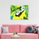 Contemporary parrot art on canvas of Gold and Blue Macaw with lime colour background