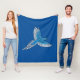Parrot in Flight, Cobalt Blue and White Fleece Blanket