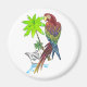 Parrot, palm trees and cruise ship with cocktail artwork on side.