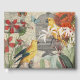 This image of yellow parrots and flowers is a beautiful modern collage of several antique painting prints of birds, flowers, and birdcages.