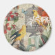 This image of yellow parrots and flowers is a beautiful modern collage of several antique painting prints of birds, flowers, and birdcages.