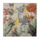 This image of yellow parrots and flowers is a beautiful modern collage of several antique painting prints of birds, flowers, and birdcages.