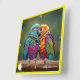This captivating design features two beautifully coloured parrots perched gracefully on a branch. The vivid hues and intricate details of the parrots bring energy and charm, while the serene setting evokes a sense of tropical tranquillity. "Original Image was generated by Meta AI. AI generated artwork. Licensed under CC BY-SA 4.0."