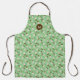 This whimsical Jack Russell Terriers themed apron features eight digitally hand drawn cartoon "Jacks" with varying black and brown head and body markings arranged in a random pattern on a sage green background - monogram can be customised - Jack Russell Terriers pattern © katz_d_zynes 2019