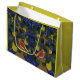 Lovely partridge in a pear tree design adorns this gift bag for a reverant and decorative package.