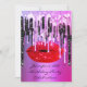 Party 16th Lips Kiss Black Pink Glitter Drips Invitation