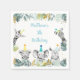 These cute birthday napkins feature watercolor safari animals with faux gold foil laves and confetti.