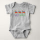 Baby suit features an original marker illustration of a rainbow donkey piñata, with PARTY ANIMAL in a colourful font. Great for a birthday party, Cinco de Mayo, Pride, or any fiesta-themed celebration! Coordinating rainbow piñata designs available.