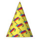 Party hat features an original marker illustration of a colourful rainbow donkey pinata. Great for a birthday party, Cinco de Mayo, or any fiesta-themed event!