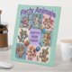 Celebrate the New Year in style with our Party Animals collection! This playful and festive design features eight adorable animals—each one celebrating in their own unique way. The design is framed in a vibrant rectangle split into nine pastel-coloured panels, where you'll find a charming pig, goat, mouse, cat, horse, rabbit, cow, and dog, all ready to ring in the new year. The centre panel proudly proclaims Happy New Year! in bold, cheerful lettering, surrounded by fun details like twinkling stars, colourful balloons, and sparkling fireworks.