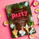Personalise the text template with your party details,Party Animals Wild Safari Pink Girl Birthday Party wood Invitation for kids boy and girls with blue pink and green and yellow and snow design ,great design invitation for birthday party and special events with family and friends and brothers and mum and dad ,invitations design with different animals elephant and lions and giraffe