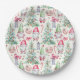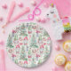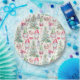 Charming paper plates decorated with a seamless watercolor pattern of Christmas gnomes, pine branches, gifts, lanterns, and candy canes. Perfect for Christmas parties, family gatherings, and festive table settings.