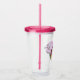 Every day is a party when you have a drink in this cute cocktail umbrella print tumbler. The design features a pink and one orange cocktail drink umbrella with bright floral print.