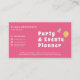Party & Events Planner Pink Business Card