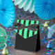 Party favour box shown in black/lime striped with a black accent ribbon. Customise this item or buy as is.
