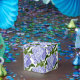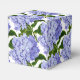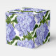 Party favour box shown in a lovely blue-lavender hydrangea flower print design.