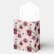 Party favour box is shown in a lovely roses print with a white ribbon bow.