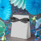 Party favour box shown in silver with a black ribbon bow. Customise this item and add your own text,photos,art or buy as is.