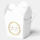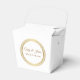 Party favour box shown in White with the Gold eternal circle on the front along with the Newlyweds names inside the circle. image on front only. Box is in a cute "Chinese take out" style. Customise this item or buy as designed.