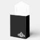 Party favour box shown in black with a white ribbon bow accent with a pageant queens tiara print. Customise this box and add a name or buy as is.