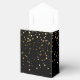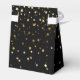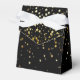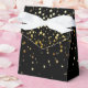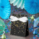 Party favour box shown in black with a festive gold stars print with a white ribbon bow.