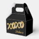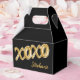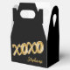 Fun black and gold party favour box with "XOXO" in foil balloons with your name and custom thank you text, perfect for a modern and chic birthday, bat mitzvah, Quinceañera, bridal shower, baby shower or bachelorette party. Use the design tool template editor to change the fonts, colours and layout to create a fun and unique personalised favour box for your party guests guests.