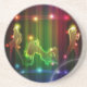 Modern, trendy and colourful design featuring neon sparkling shapes of three girls dancing in the party light.