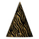 This party hat is shown with a fun faux glitter tiger print in black and gold colorings.