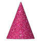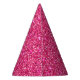This party hat is shown with a fun pink faux glitter print.