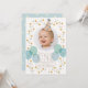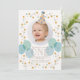 This cute 1st/first birthday party invitation features your photo with a party hat in pink and balloons in blue and green. The reverse side features a light blue background with random triangle and star patterns. Personalise for your needs. You can find more matching products at my store.